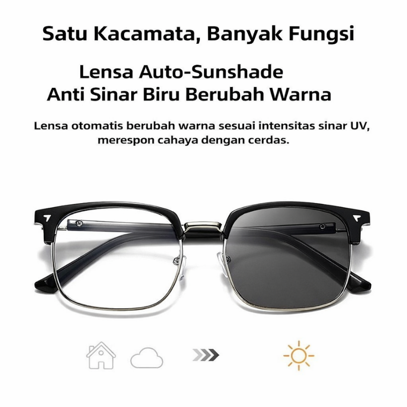 Menyesuaikan otomatis dengan cahaya matahari, melindungi mata Anda dari silau tanpa perlu mengganti kacamata.